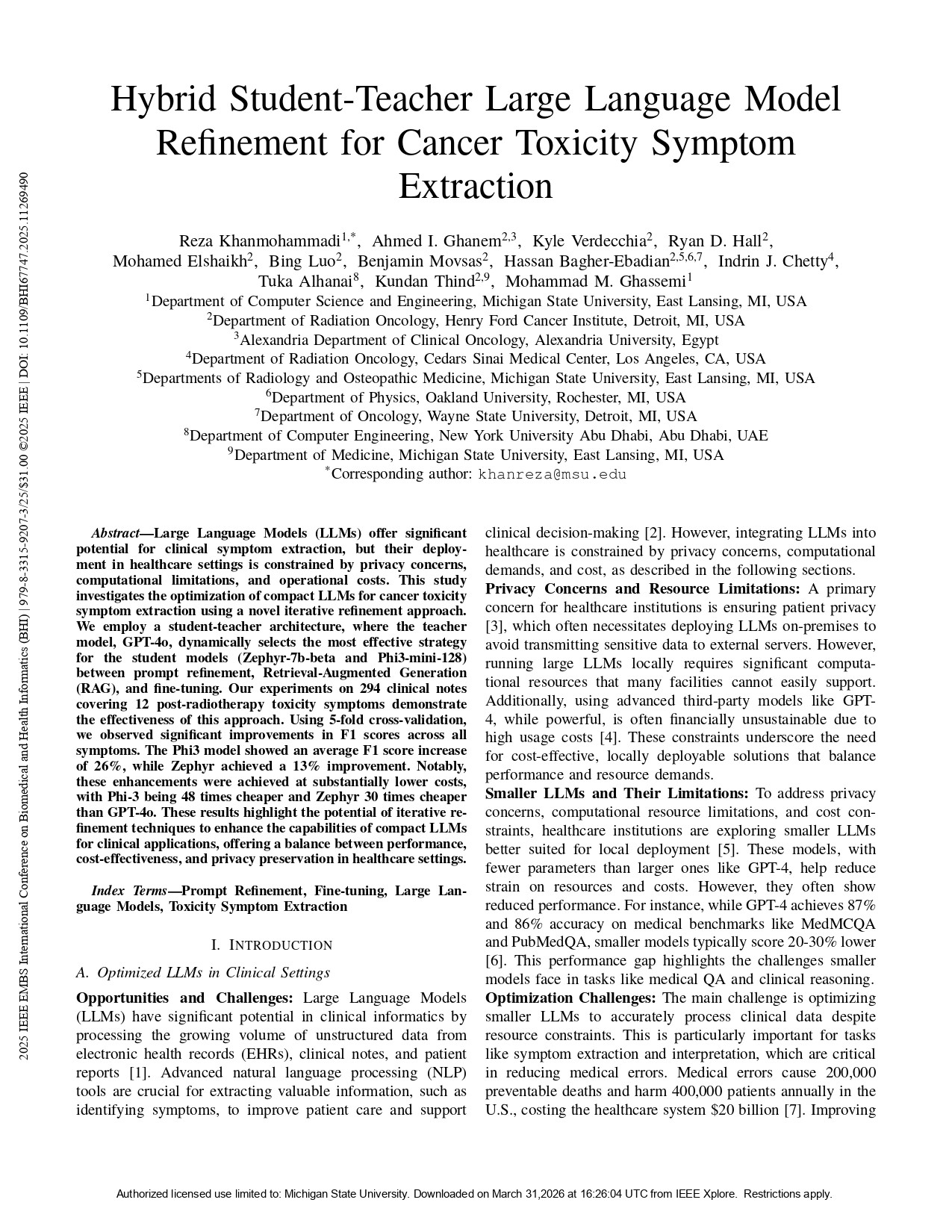 Khanmohammadi, R., Ghanem, A. I., Verdecchia, K., Hall, R., Elshaikh, M., Movsas, B., Bagher-Ebadian, H., Luo, B., Chetty, I. J., Alhanai, T., Thind, K., & Ghassemi, M. M. (2024).